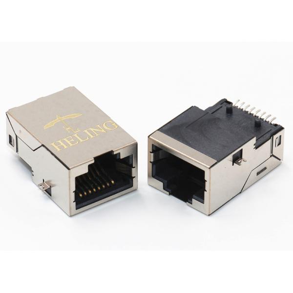100 Base T Integrated Magnetics RJ45 Brass Shielded Right Angle Side Entry Images |